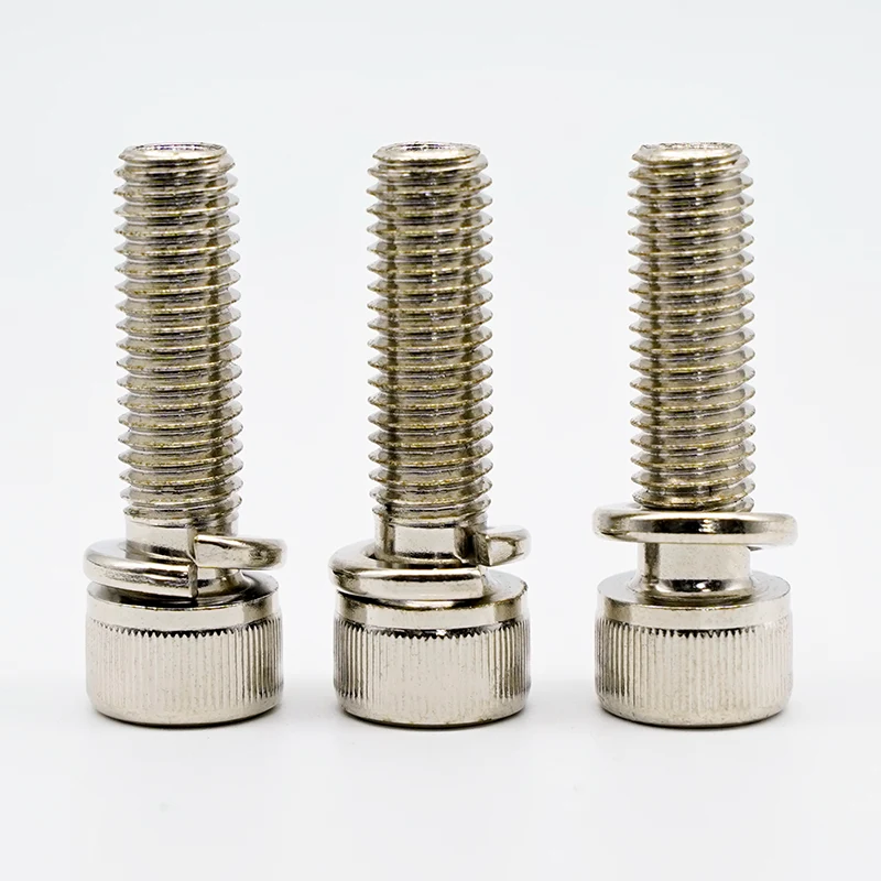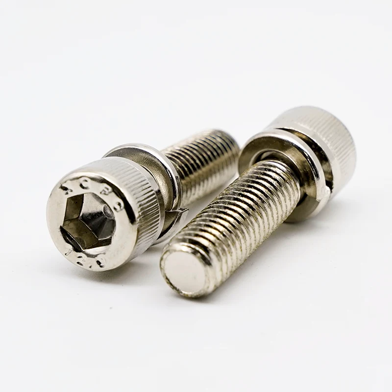 స్ప్రింగ్ వాషర్లతో కూడిన నికెల్-ప్లేటెడ్ హెక్స్ సాకెట్ హెడ్ క్యాప్ స్క్రూలు సాంప్రదాయ స్క్రూల కంటే అనేక ప్రయోజనాలను అందిస్తాయి, ప్రత్యేకించి శీఘ్ర మరియు సులభమైన అసెంబ్లీ పరంగా. కొన్ని ముఖ్య ప్రయోజనాలు క్రింద ఇవ్వబడ్డాయి: